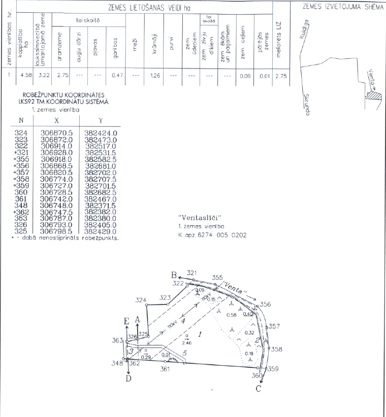River frontage: 350 meters along the Venta River
