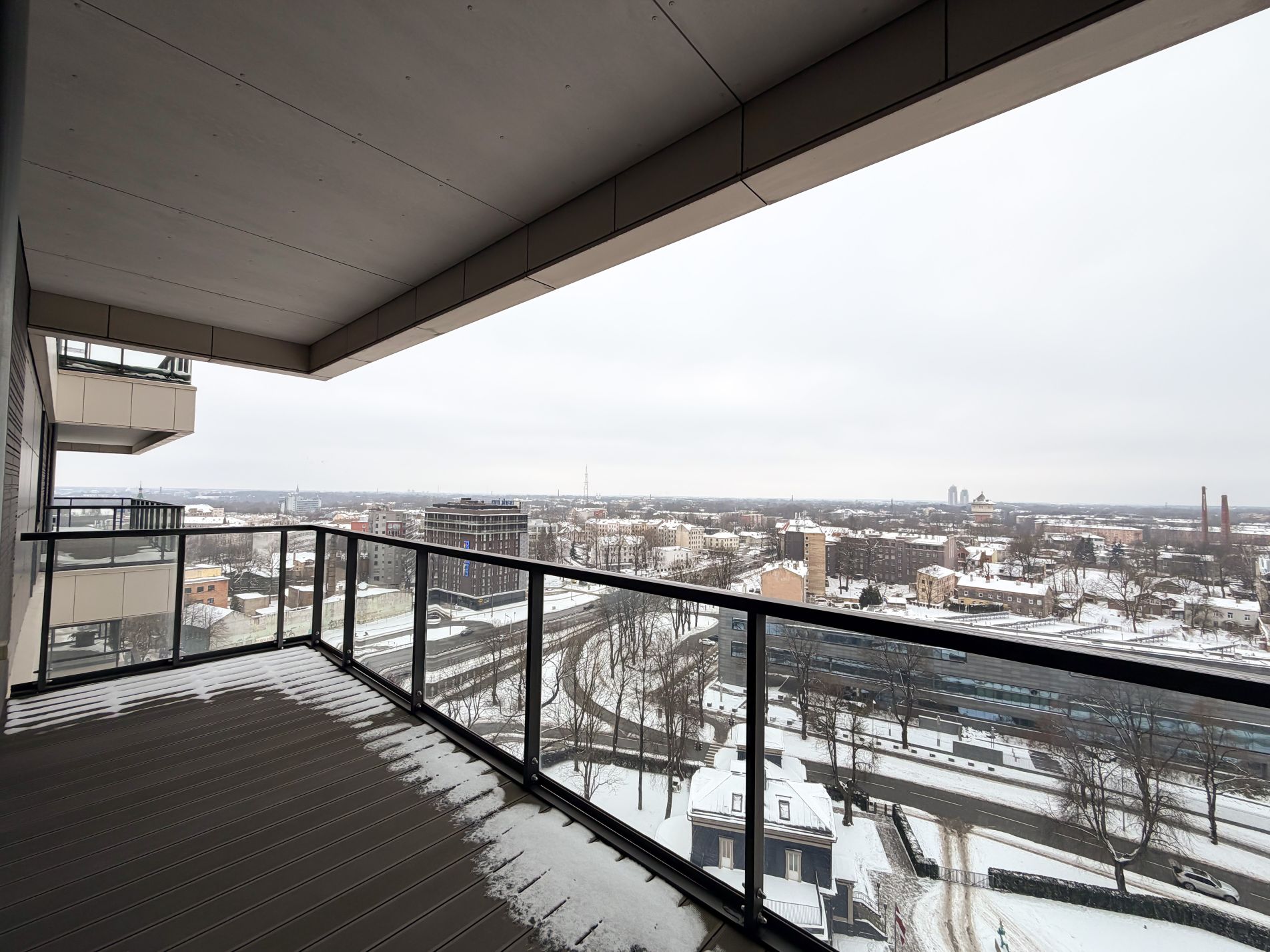 Šis trīs istabu dzīvoklis atrodas 15. stāvā, sniedzot jums neatkārtojamu Daugavas un pilsētas panorāmu.
