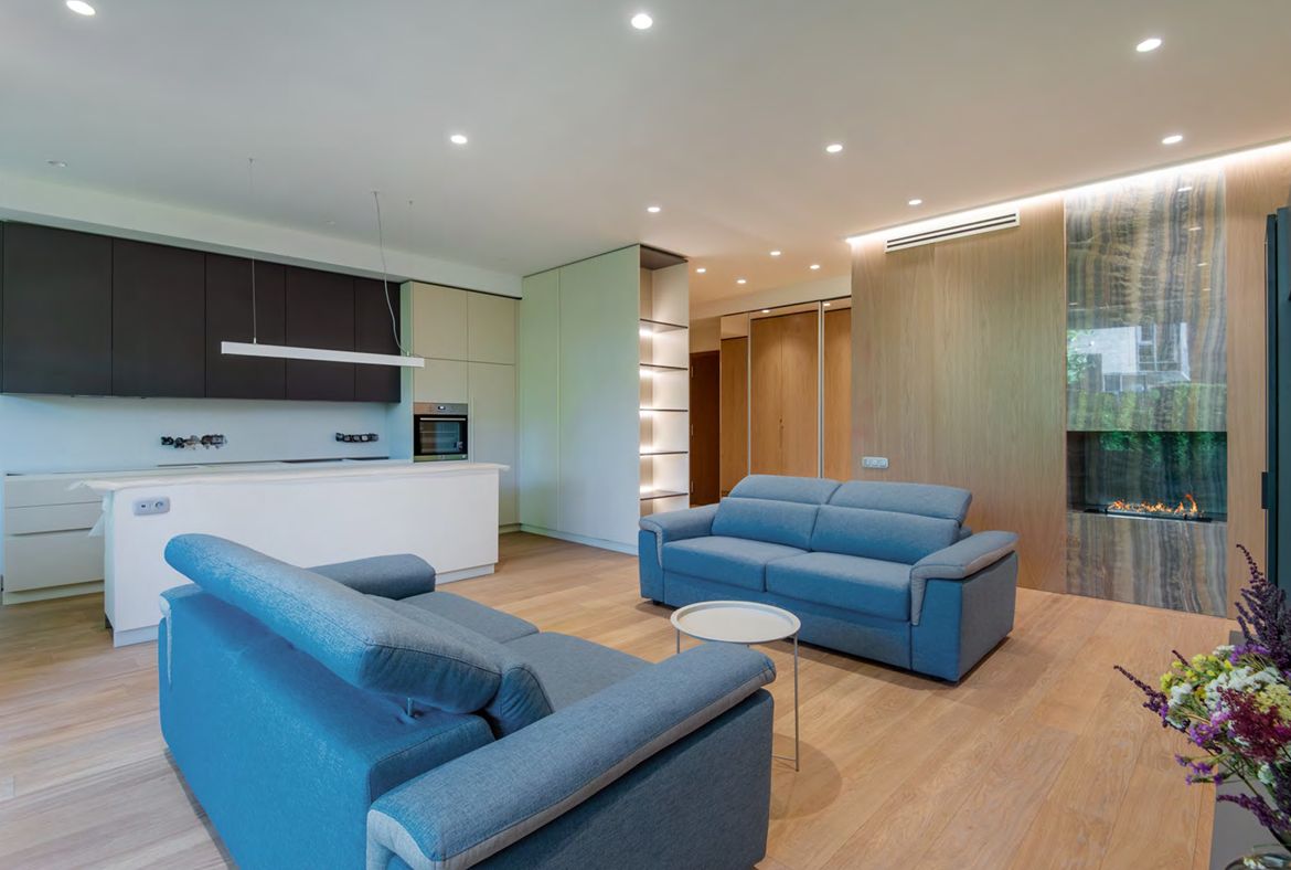 Pilnībā mēbelēts ar augstākās kvalitātes mēbelēm un apdari, ieskaitot individuāli izgatavotas skapju sistēmas un Itālijā pasūtītas TV mēbeles