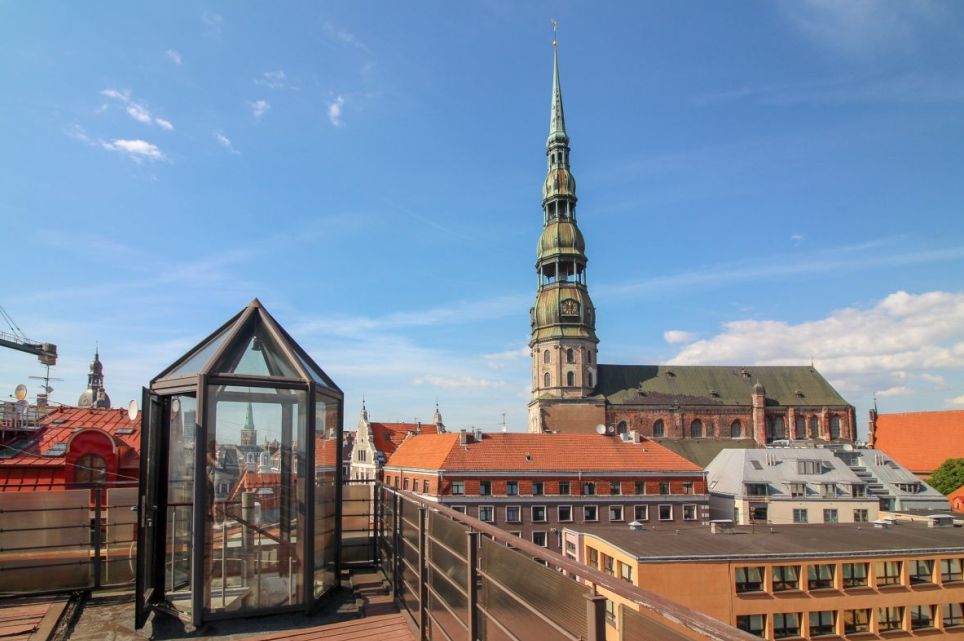 Terase ar skatu uz Vecrīgu un Daugavu