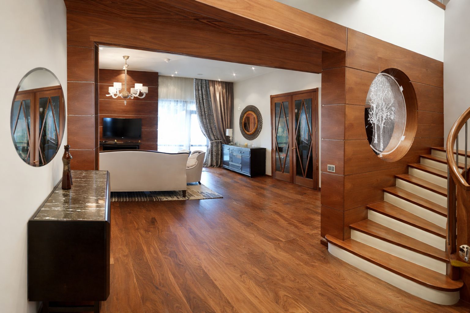 Interjerā izmantoti augstvērtīgi materiāli un dizaina risinājumi: