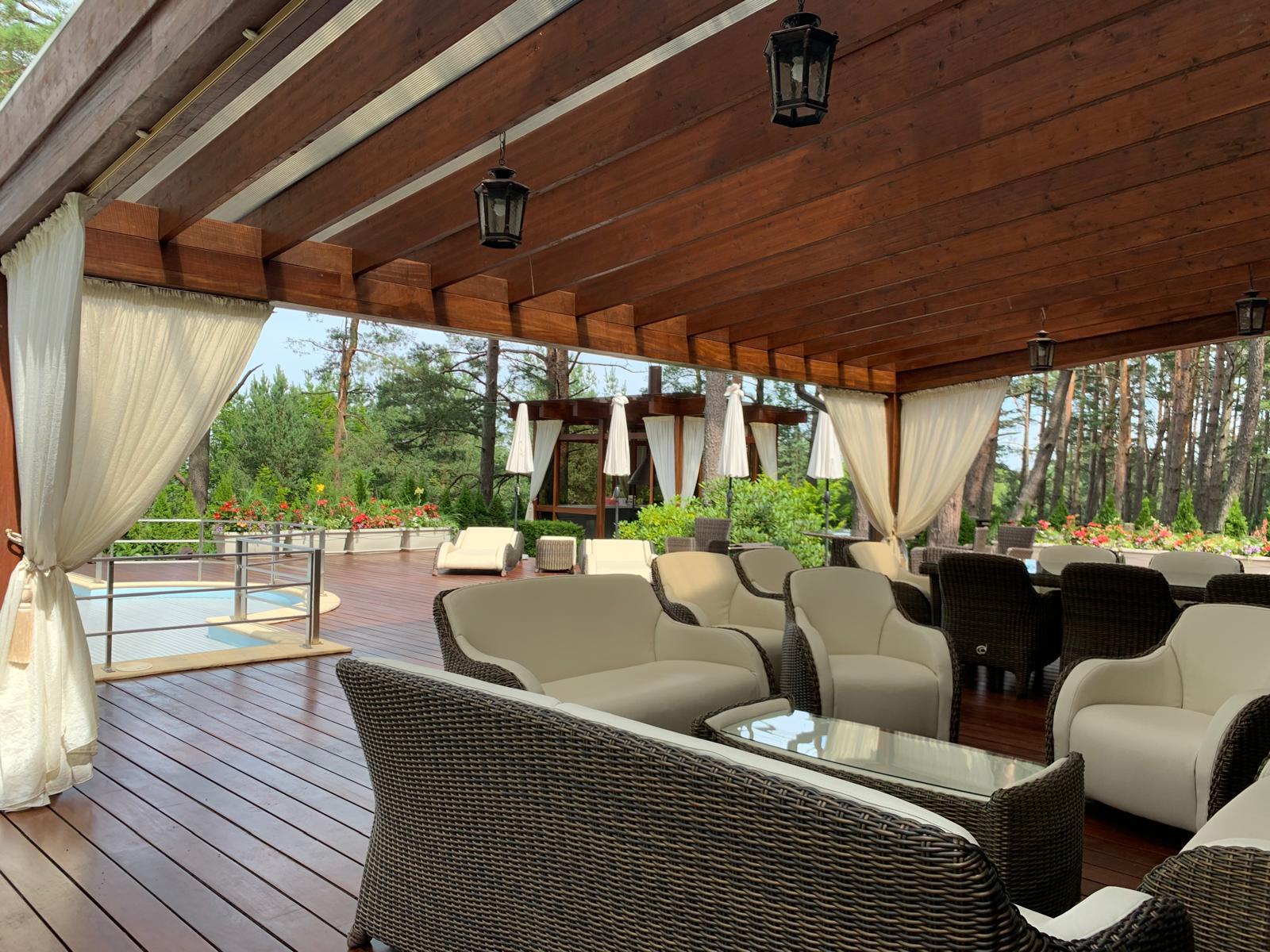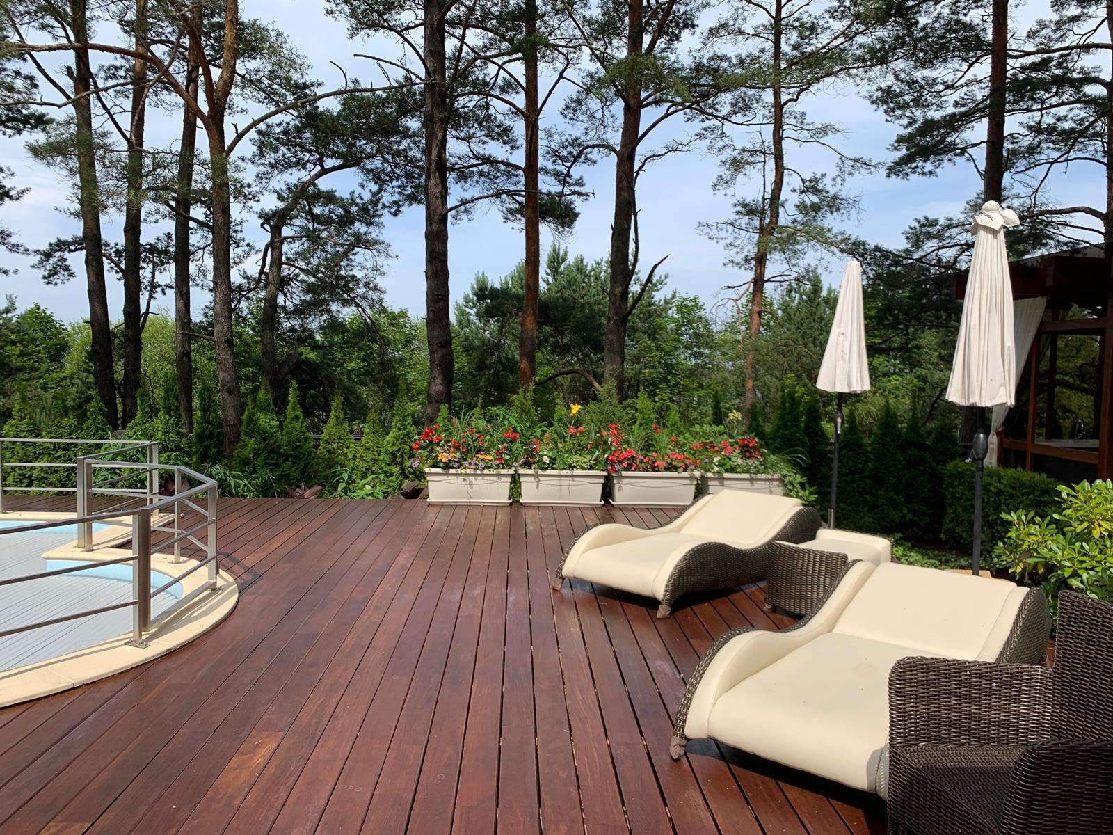 Plaša terase pie mājas un baseina – 300 m²