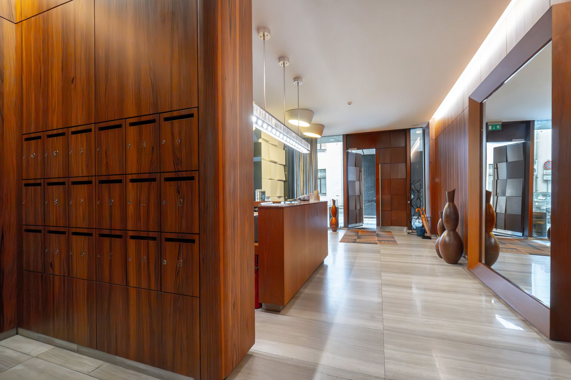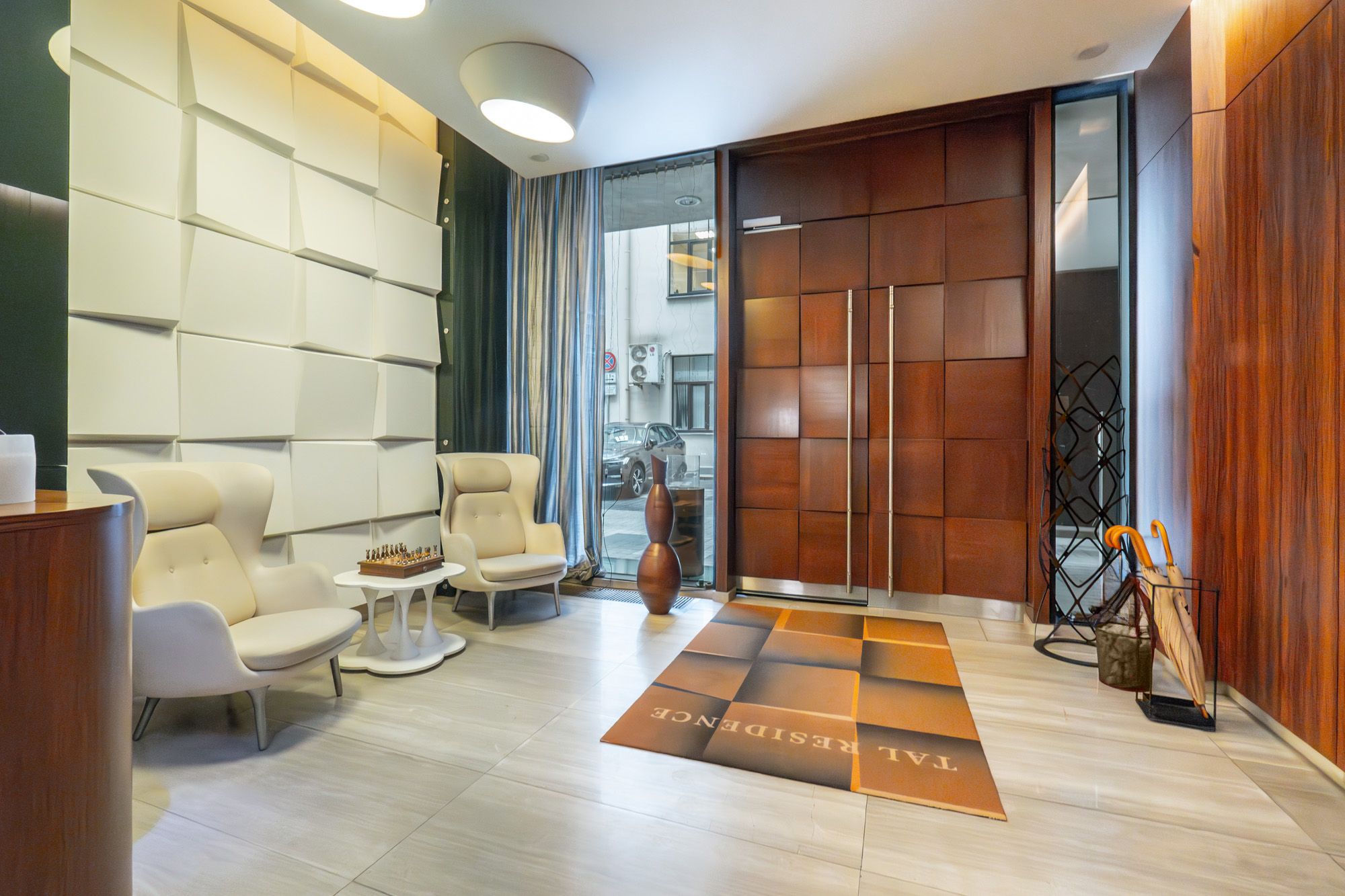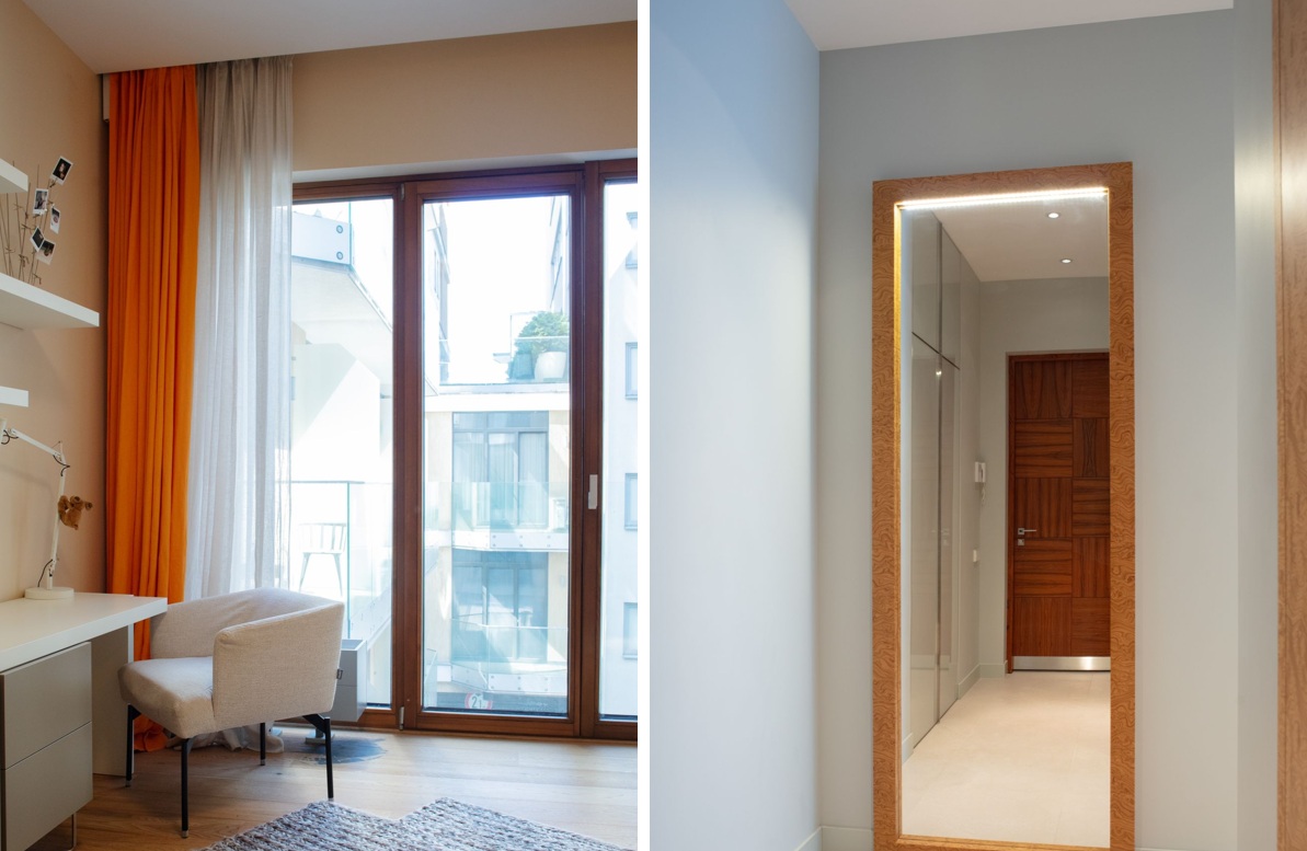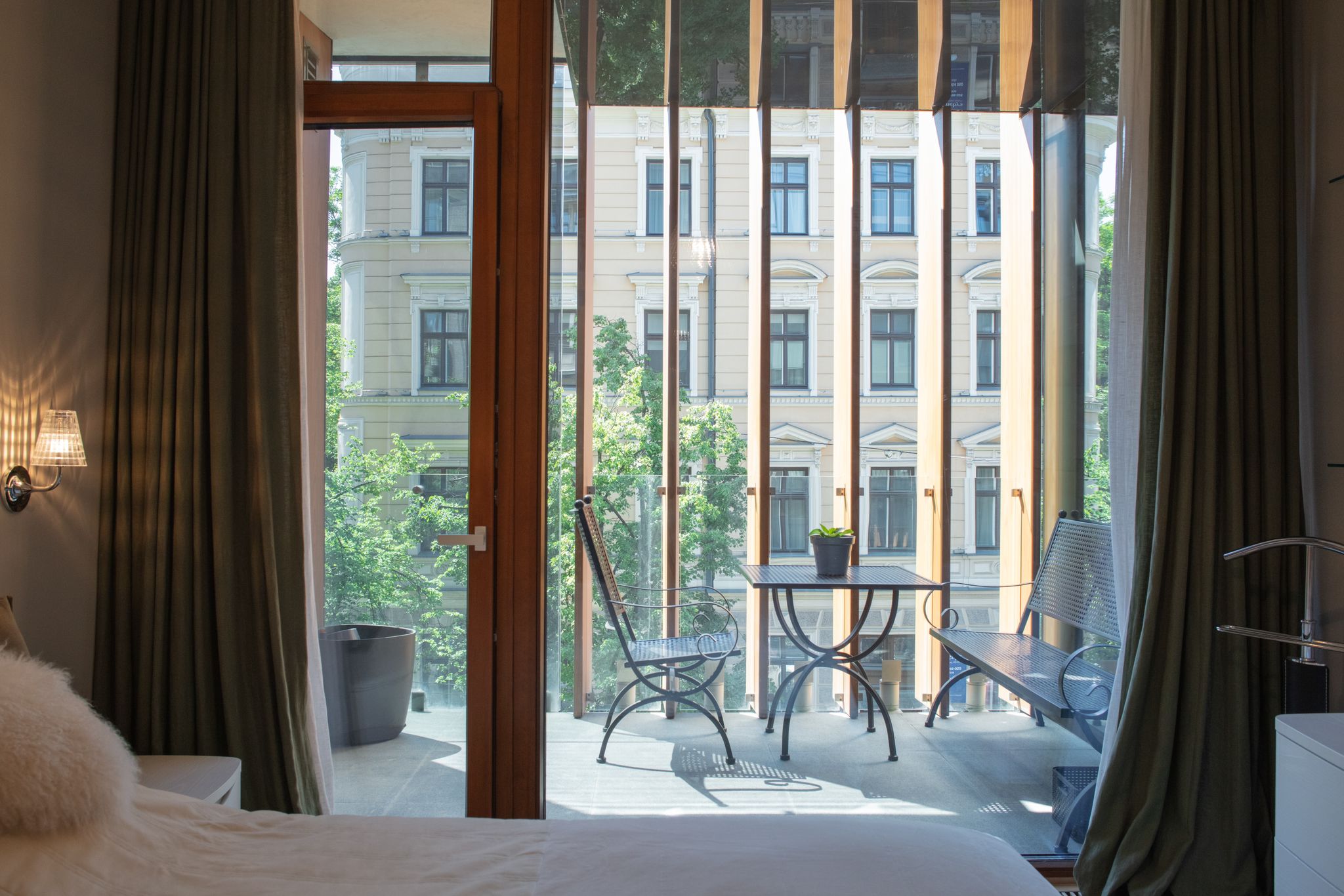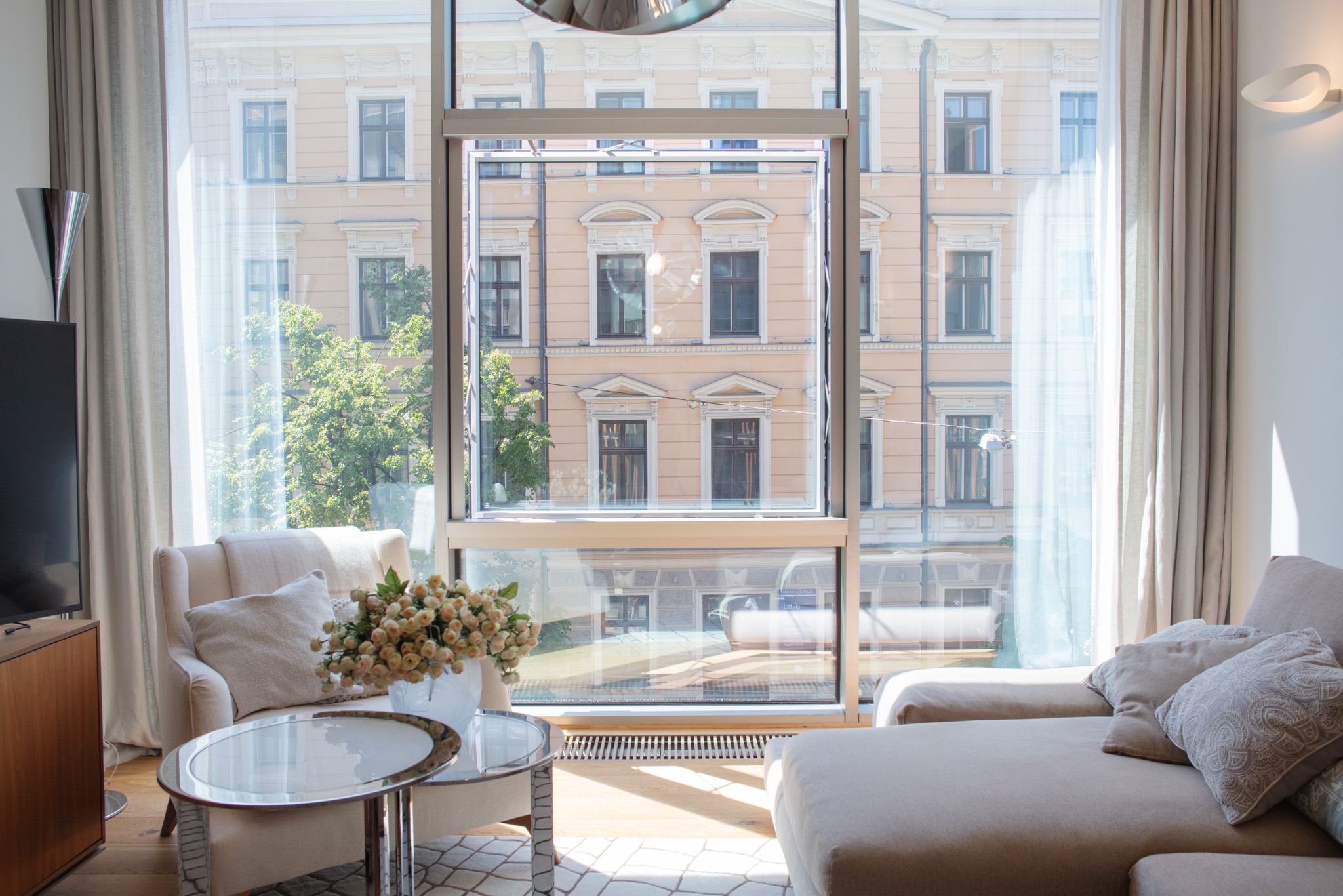 Lielie logi piepilda telpas ar dabisko gaismu un paver skatus gan uz sakopto iekšpagalmu, gan apkārtējo arhitektūru. Interjers veidots mūsdienīgā, atturīgi elegantā stilā, izmantojot kvalitatīvus un ilgmūžīgus apdares materiālus.