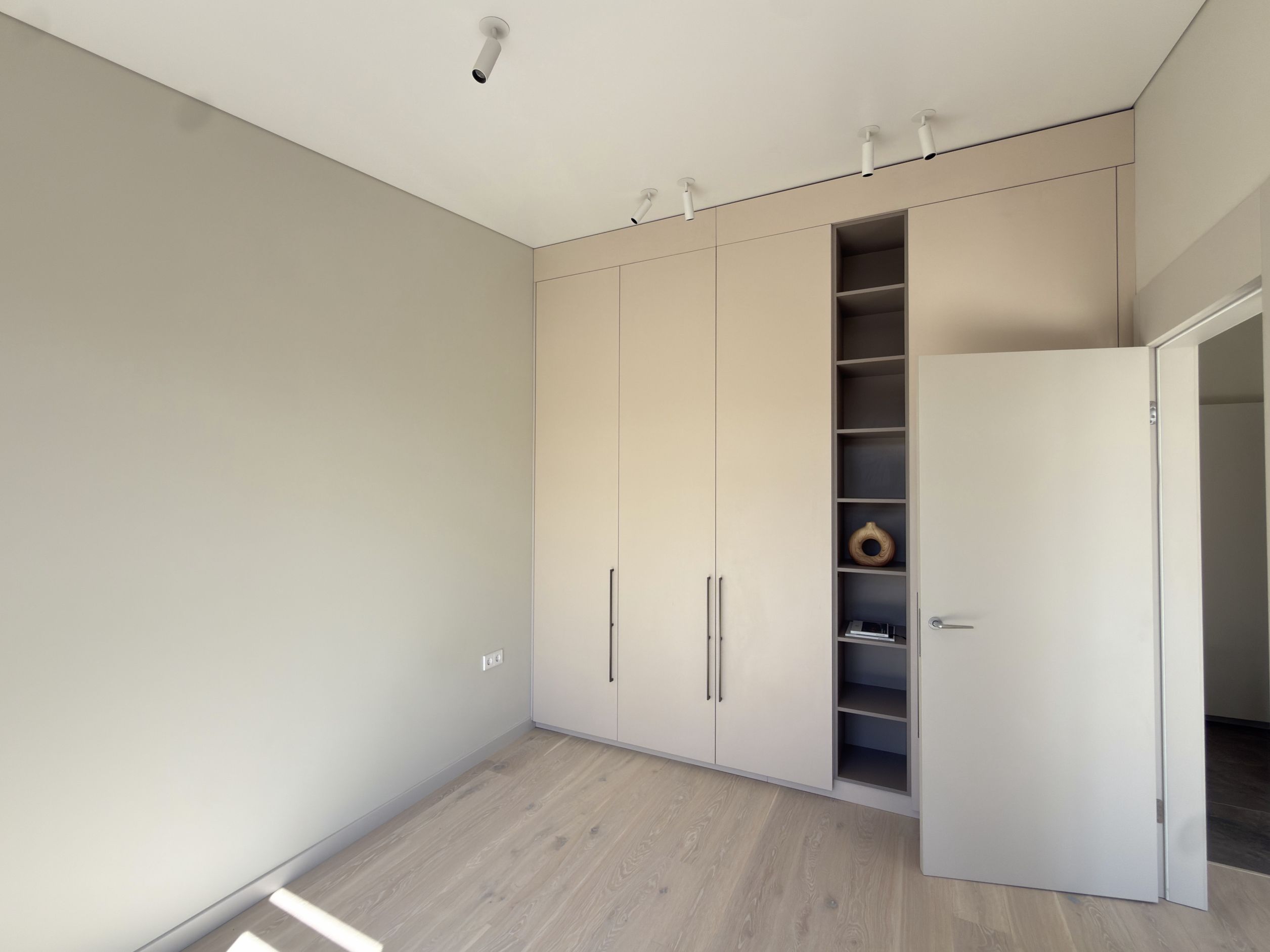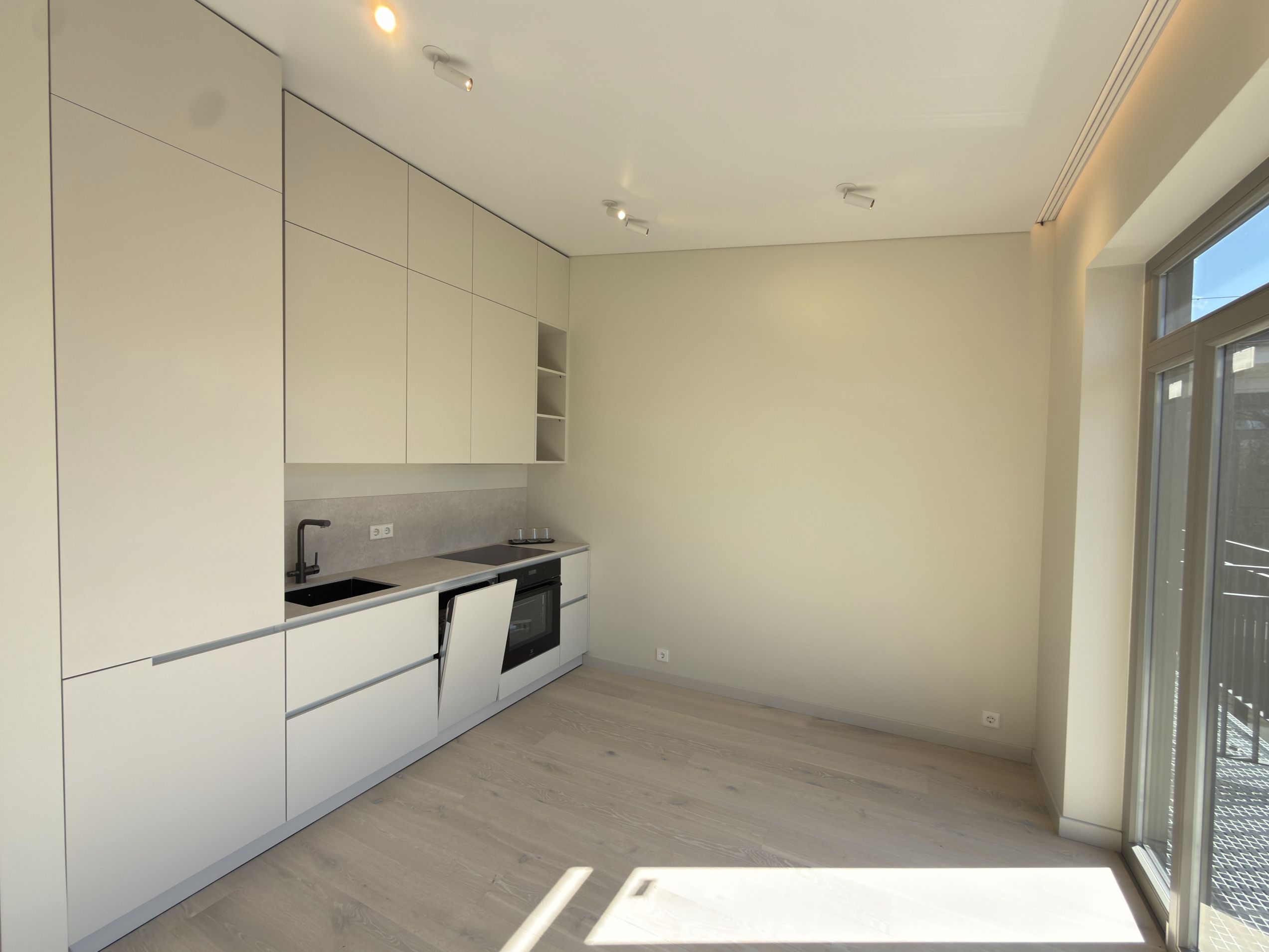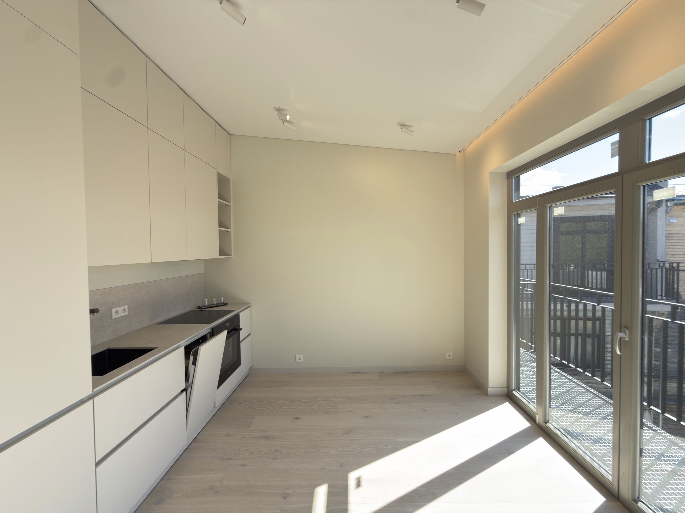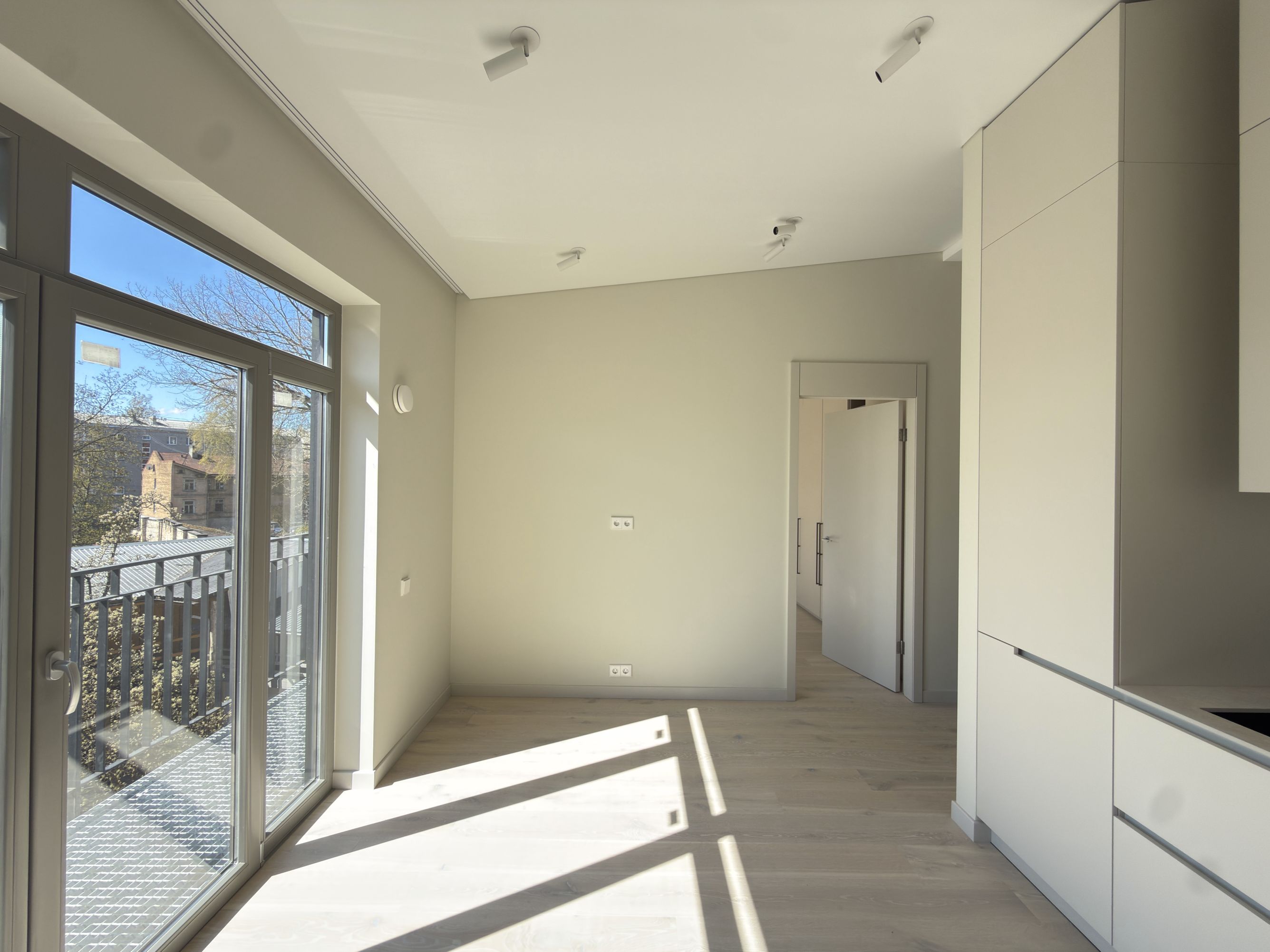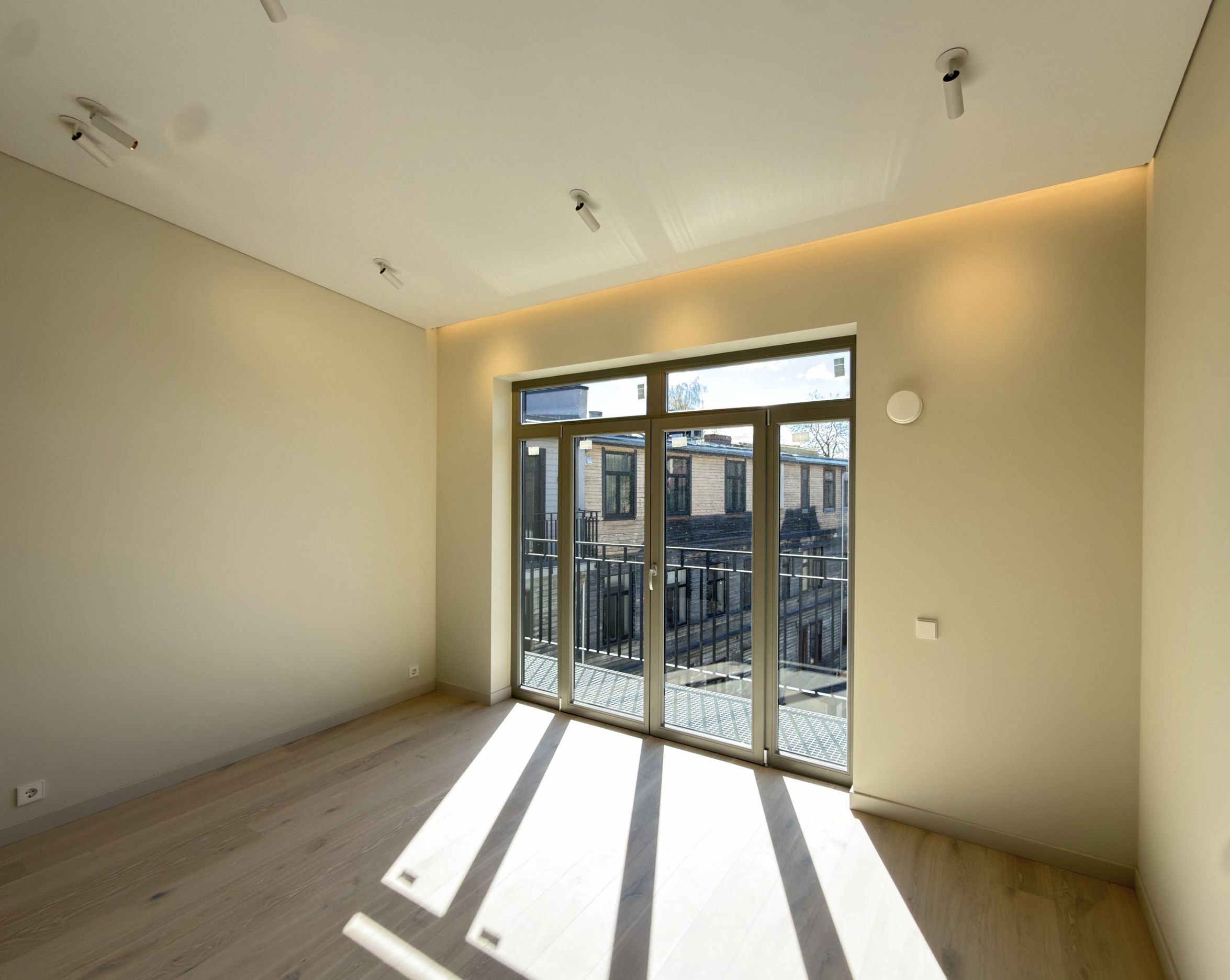 Dzīvoklis tiek pārdots ar pilnu kvalitatīvu apdari un ir gatavs tūlītējai dzīvošanai. Tajā ir parketa grīdas visās dzīvojamās telpās, iebūvēta virtuve ar sadzīves tehniku, moderns vannas istabas aprīkojums ar vannu un dušu, kā arī iebūvēti skapji un pārdomāti uzglabāšanas risinājumi. Interjers veidots mūsdienīgā, neitrālā stilā, kas viegli pielāgojams dažādiem dizaina risinājumiem.